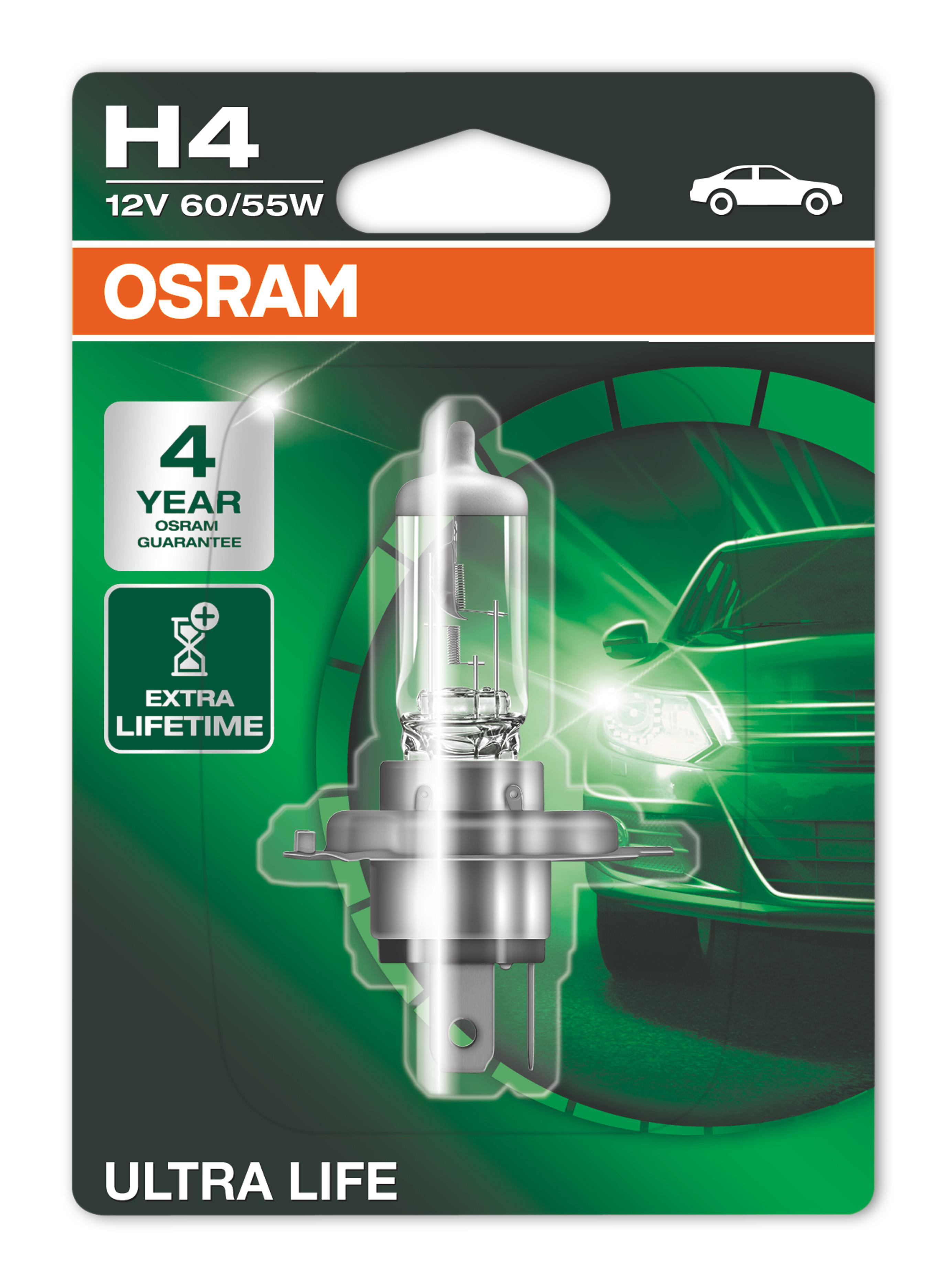 OSRAM 12V 60/55W ULTRALIFE P43T H4 BULB (472)SINGLE BLISTERSINGLE BOXEDTWIN PACK
